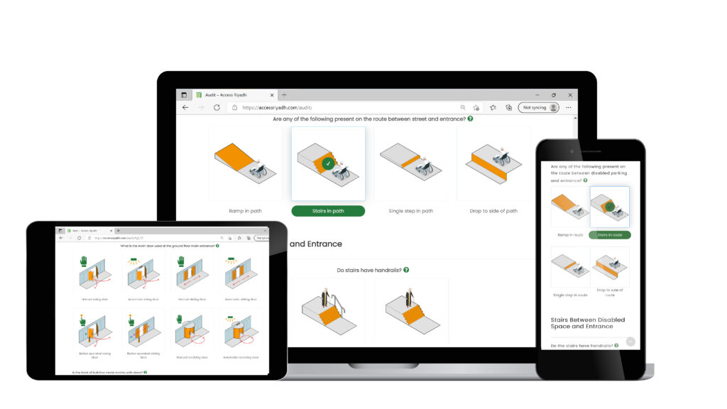 Access Riyadh automatically calculates compliance based on user information submitted. Compliance scores and awards can be used to issue ratings to buildings. Users are provided with all tools and templates needed to improve their rating, and benefiting disabled people in the process.